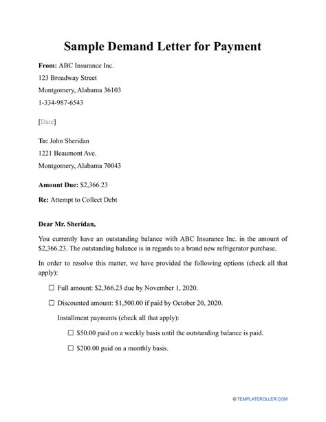 They should detail the amount due, and any accrued penalties or interest, and accept payment. If legal action is to occur to resolve this. This demand letter for payment serves as official notice to you and may be tendered in court as evidence of your failure to pay.